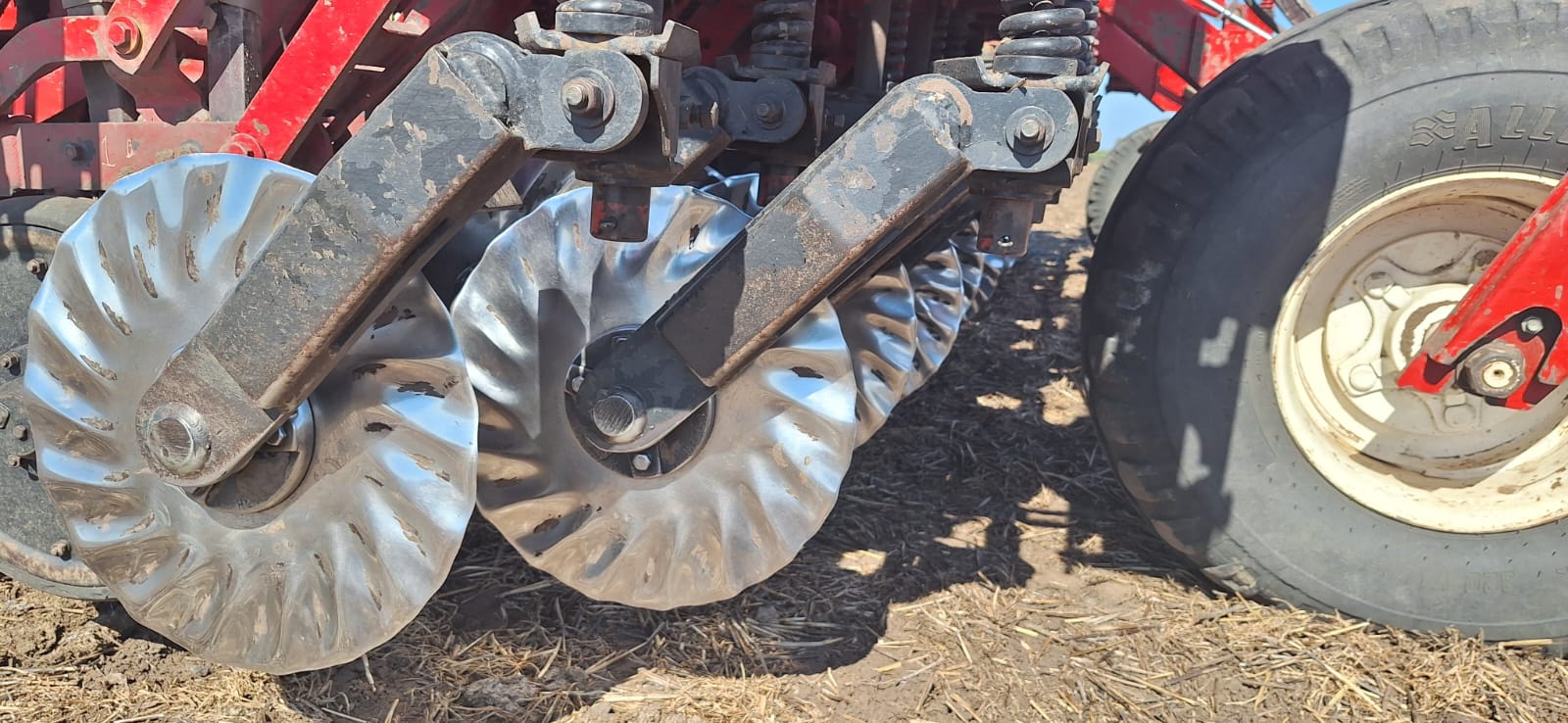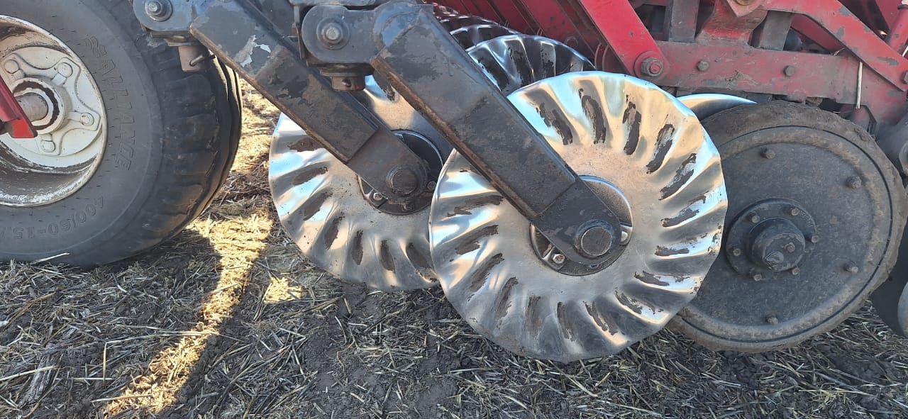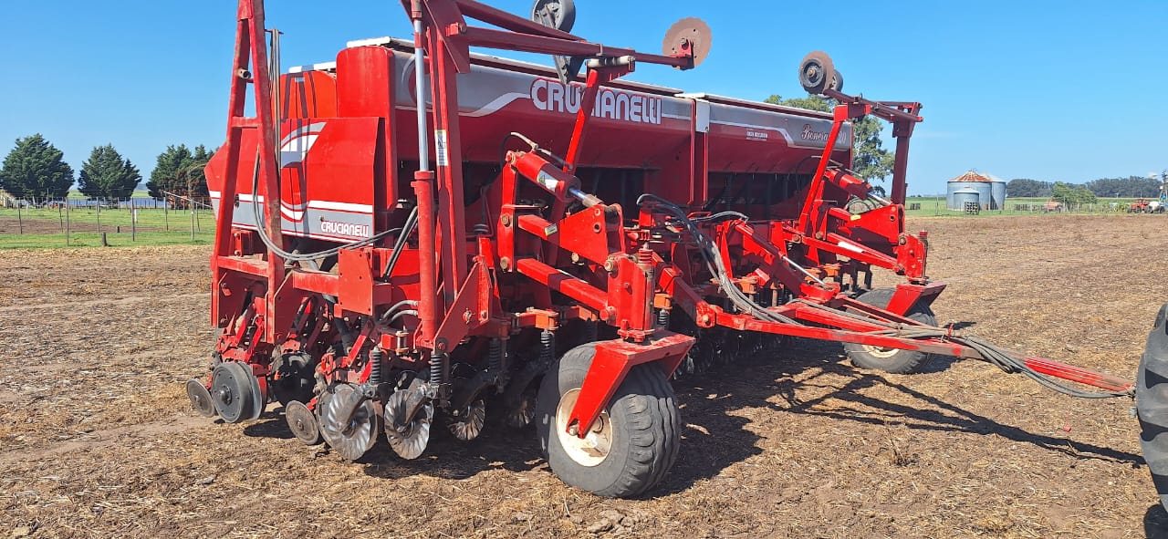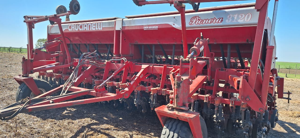 Sembradora Crucianelli de 31 líneas a 20 cm, con doble disco. Turbos en buen estado. Presenta juego en paralelogramos y tapadoras. Niveladoras con bolilleros y masas en buen estado. Chasis, horquillas y cubiertas en buen estado general. Cajón grande. La máquina se encuentra en buen estado general de funcionamiento.