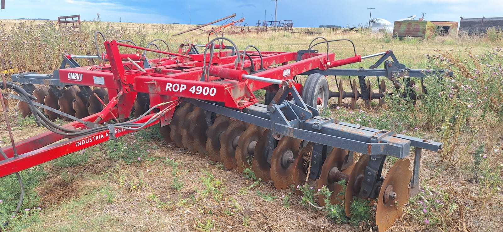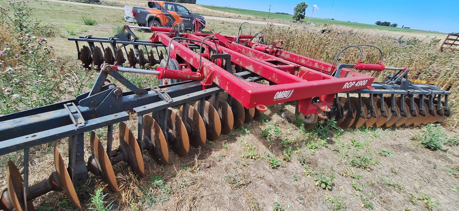 RASTRA DE DISCO OMBU MOD 4900 DE 52 DISCOS – AÑO 2018, con 52 discos (dentados y lisos) de 24″, discos en buen estado, cruce manual, cajas, eje y chasis en buen estado, estado general bueno .