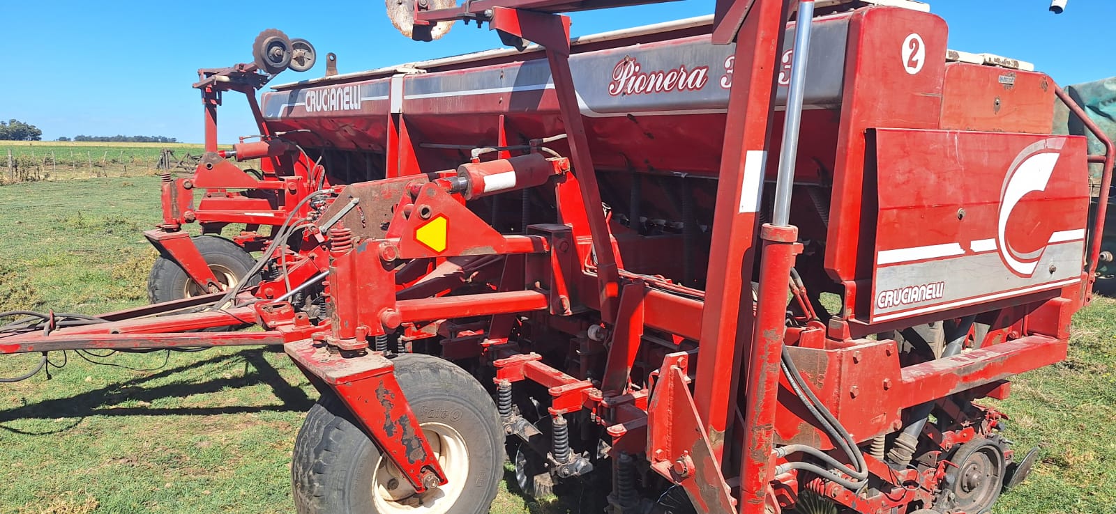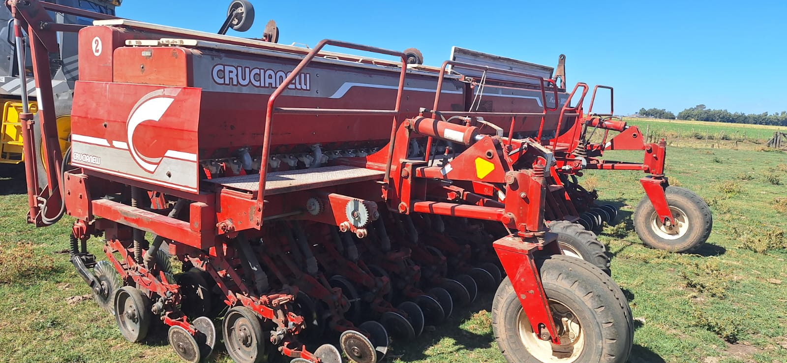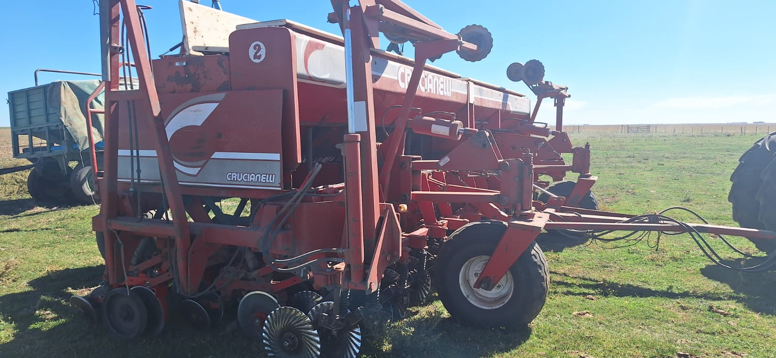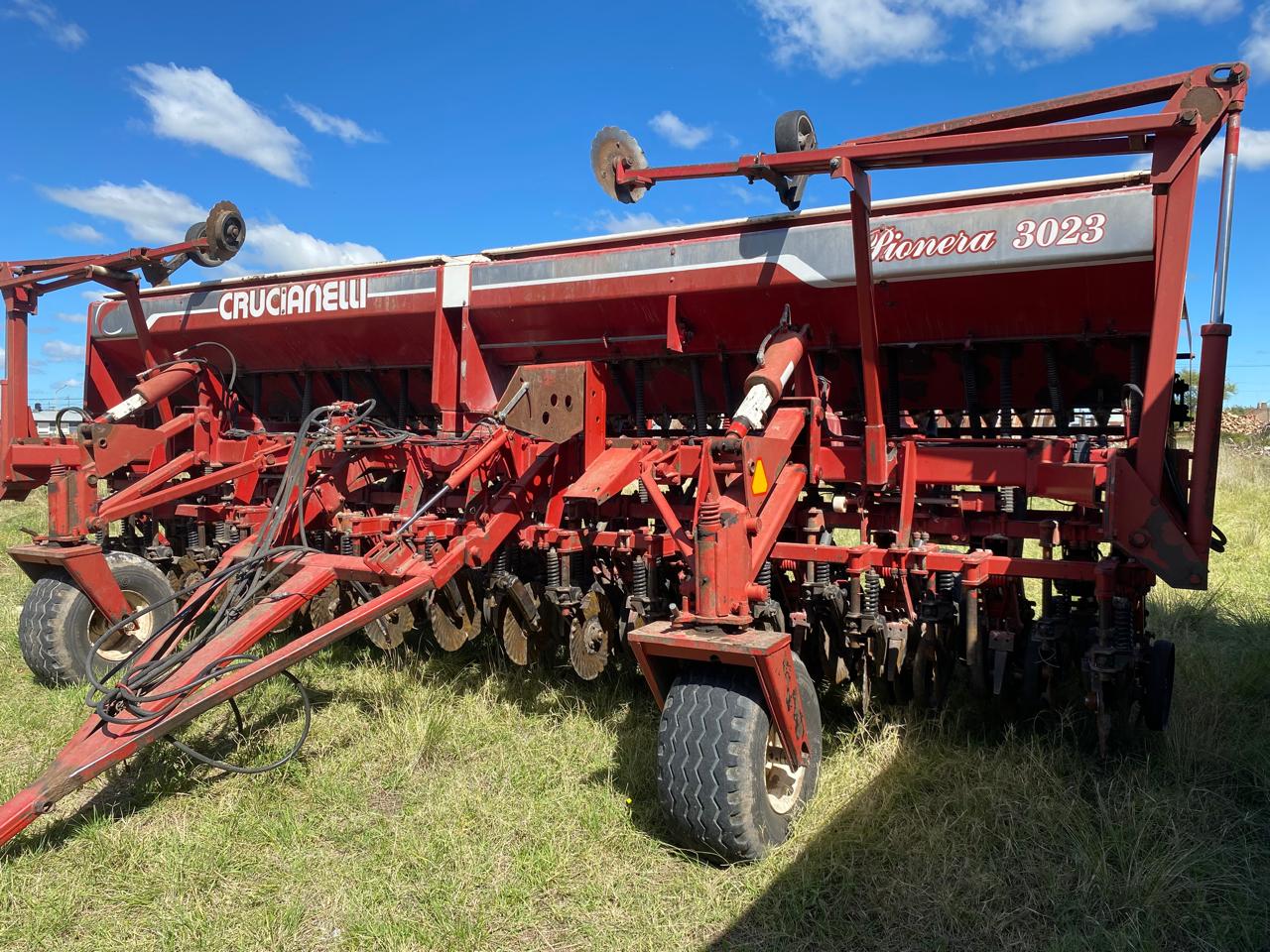 Sembradora Crucianelli de 30 líneas a 23 cm, equipada con tolva combinada para semilla y fertilizante, sistema de dosificación mecánico y kit de grano grueso incorporado.
