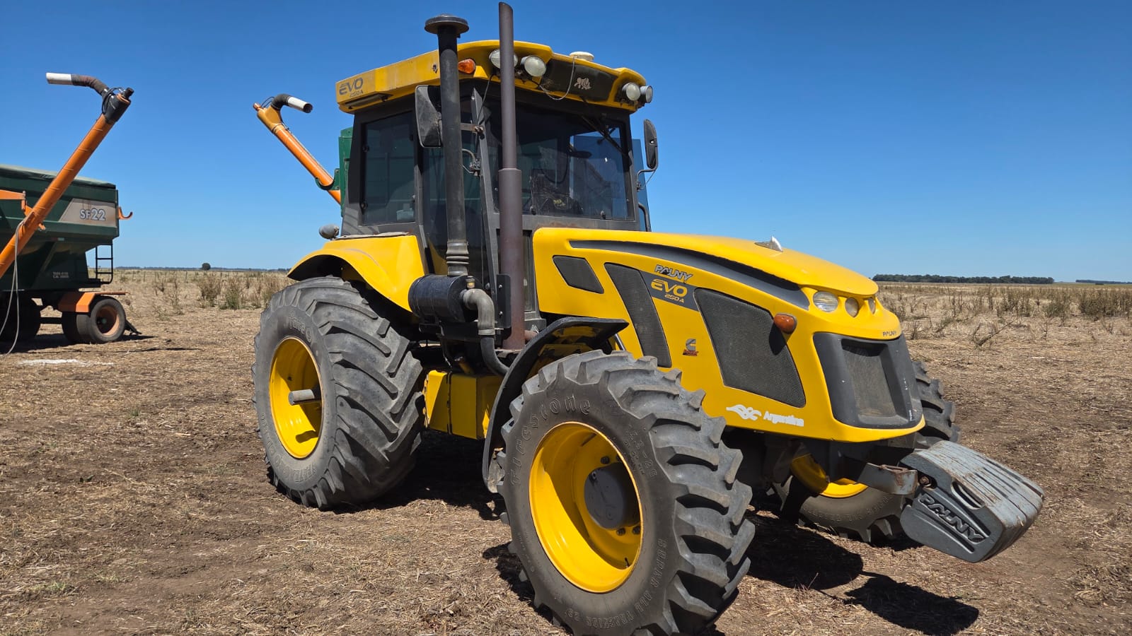Tractor Pauny 250 Evo, año 2016, con 5.500 hs de uso. Equipado con rodado 23.1×30, cubiertas en buen estado (50%). Cuenta con centro hidráulico abierto. Estado general bueno.