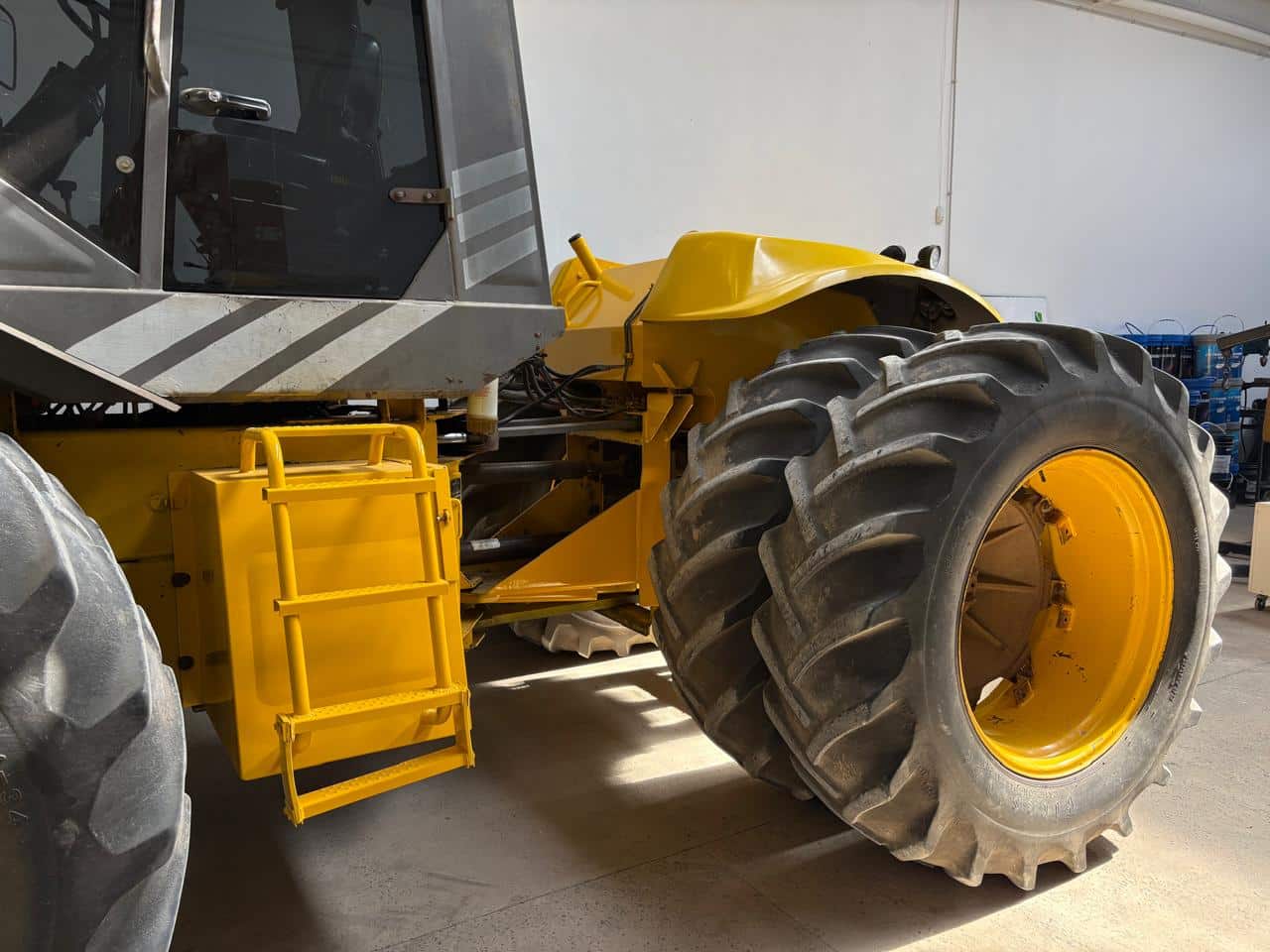 Equipado con cabina cerrada, aire acondicionado, contrapesos y batería en servicio. Chasis en muy buen estado general y pintura en condición buena.